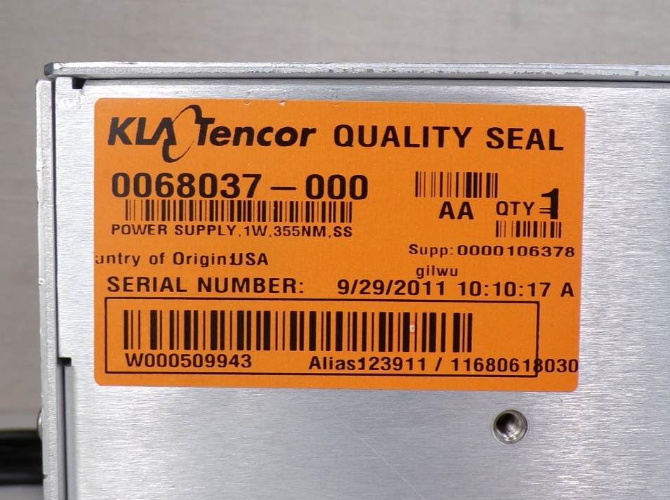 These Spectra Physics J40-2S-21K-08 Laser Power Supply KLA Tencor 0068037-000 AA is used working surplus. It show signs of handling, such as minor scuffing and scratching. Otherwise, it is in good condition.