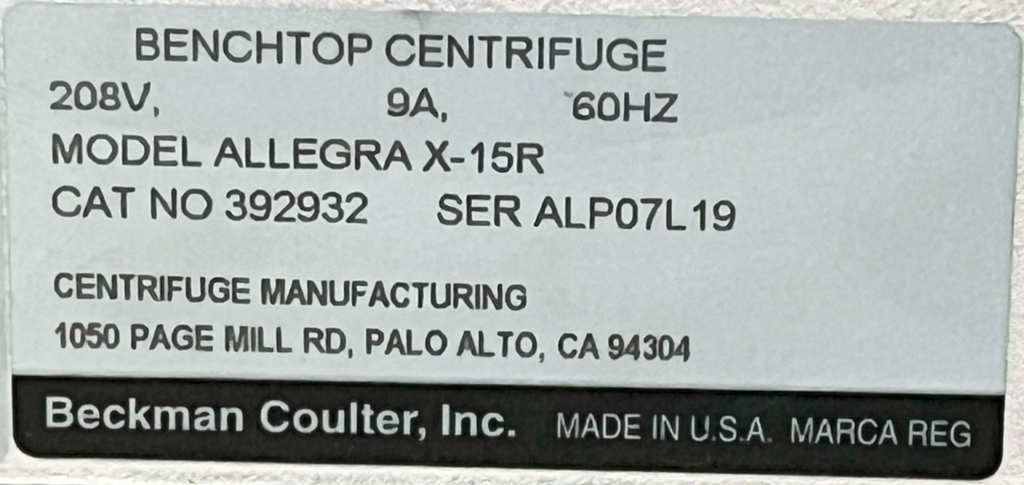 Beckman Coulter Allegra X-15R Centrifuge *non-working, sold as-is.