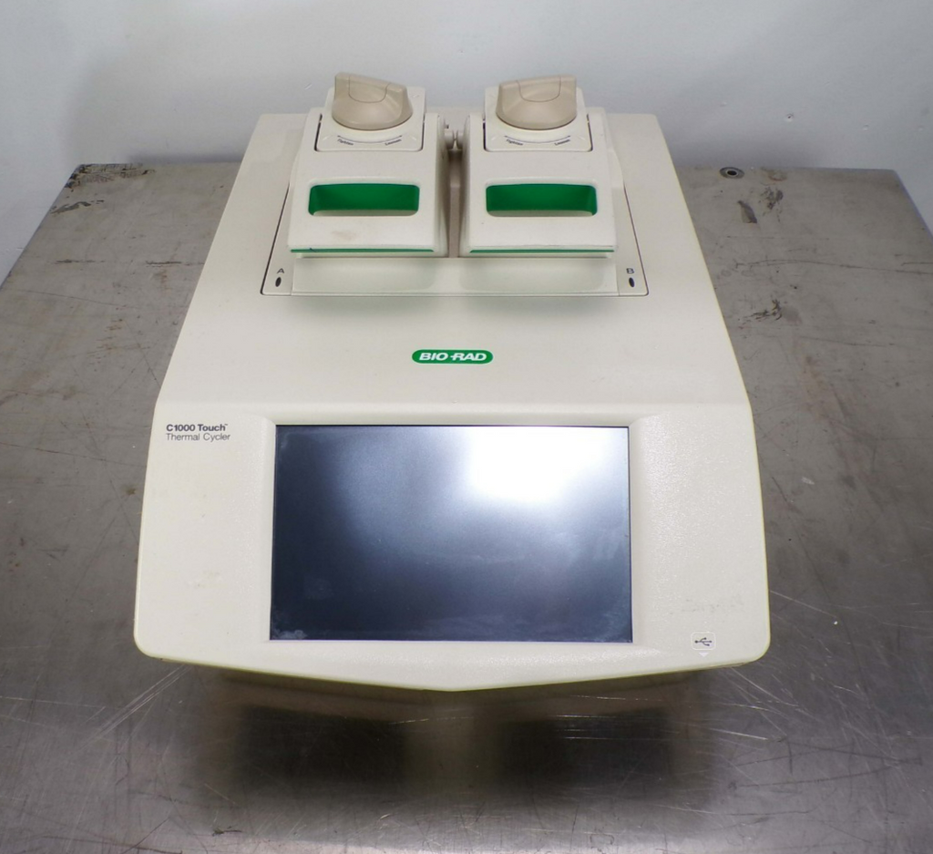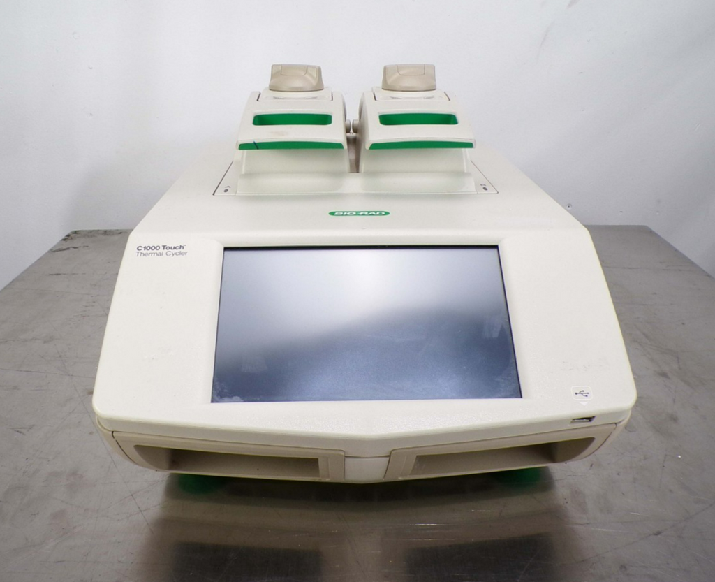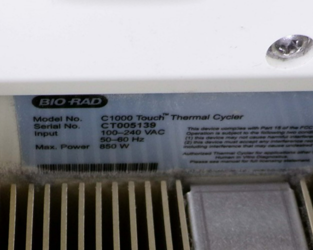 This Bio Rad C1000 Touch Thermal Cycler, is used untested surplus. It does power on, but no further testing was done. There are signs of use and handling, such as, minor scuffing and scratching. Otherwise, the physical condition of the unit is good and clean.