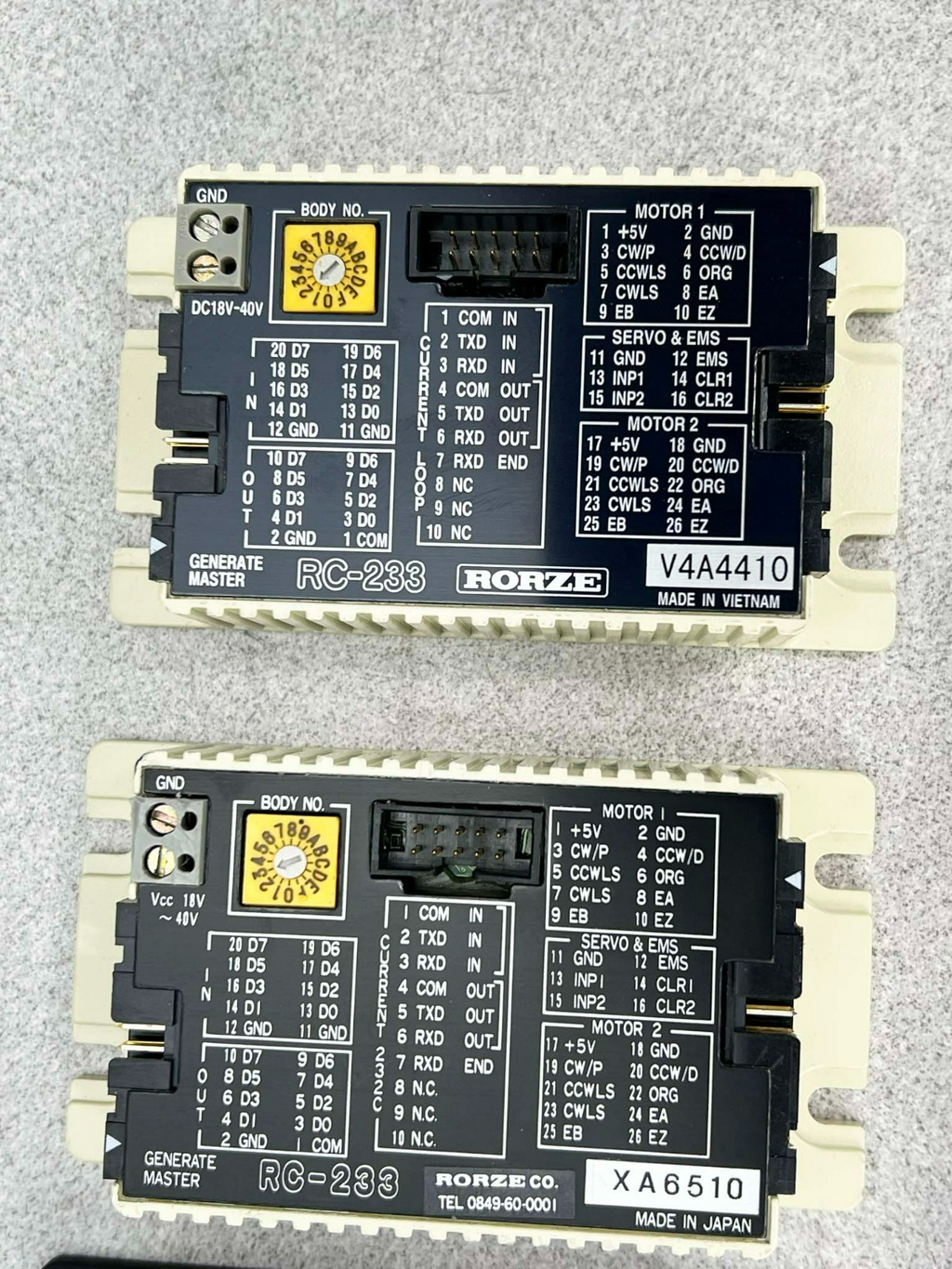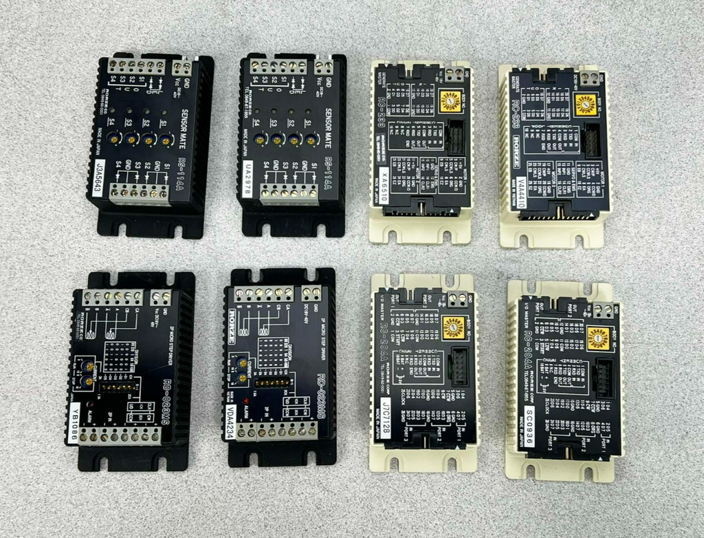 This lot of eight Rorze RC-204A RC-233 RD-023MS RS-114A Drivers, is used working surplus. The lost consist of two of each following model number (listed below). The physical condition of the units is good and clean.