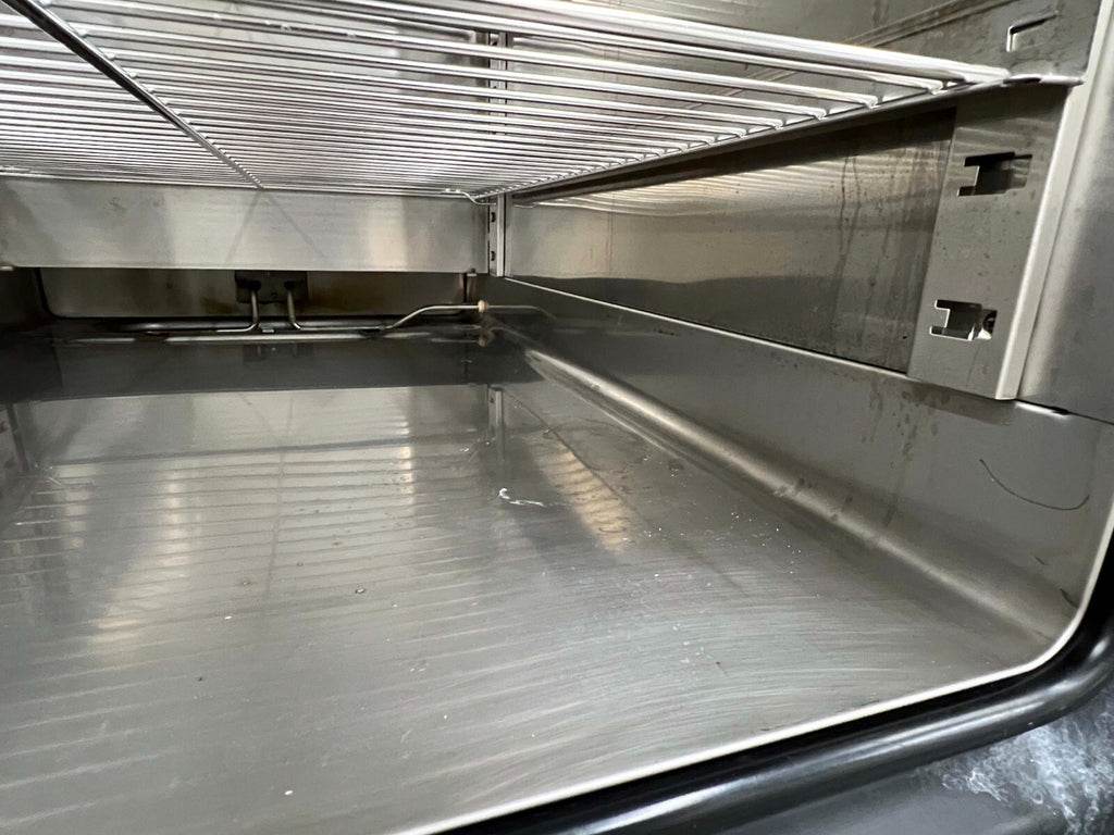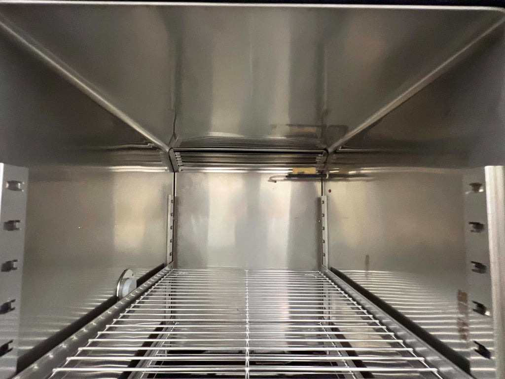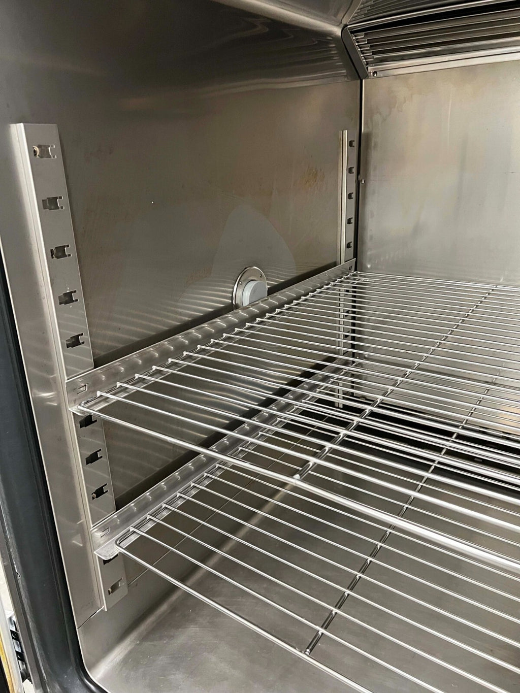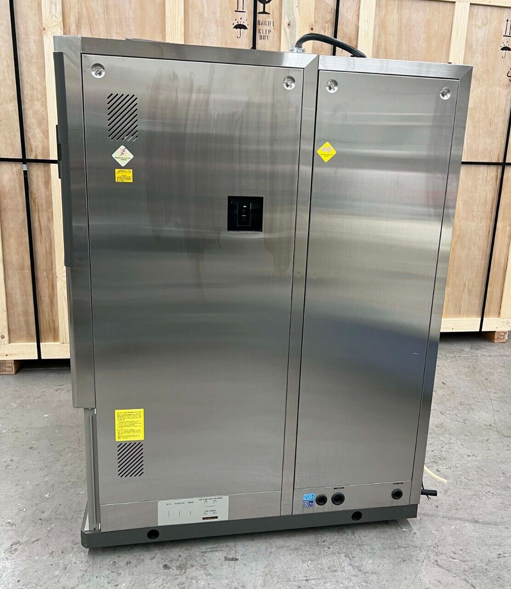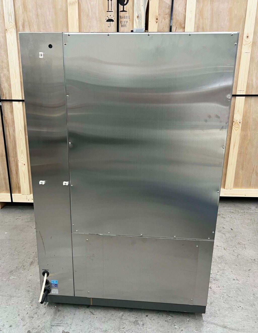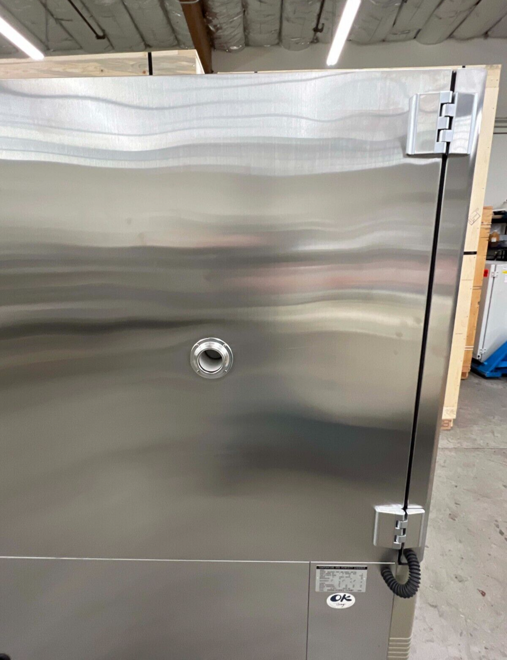 This Tabai Espec PH-3FT Temperature and Humidity Chamber, is used working surplus. The hinges on the plastic door covering the circuit breaker, located on the front bottom right of the unit have been broken. However, the door can still be used to cover the circuit breaker and connection terminals located in this area. Otherwise, the physical condition of the chamber is good and clean.