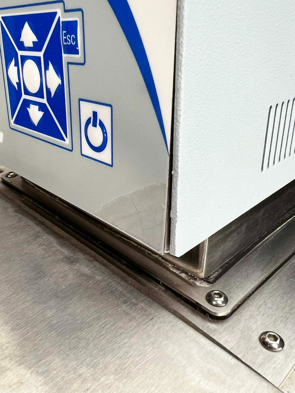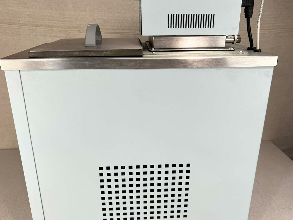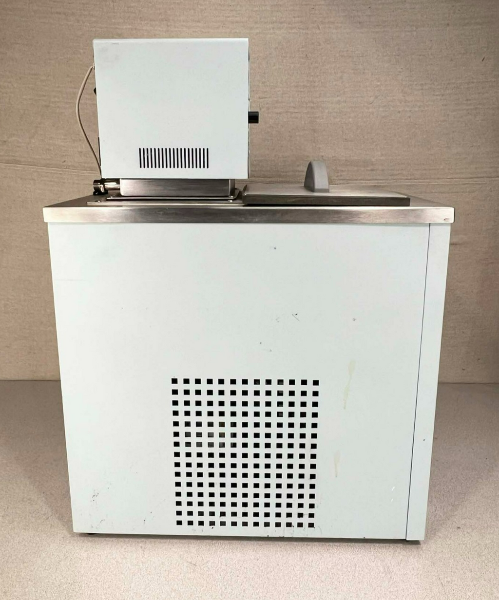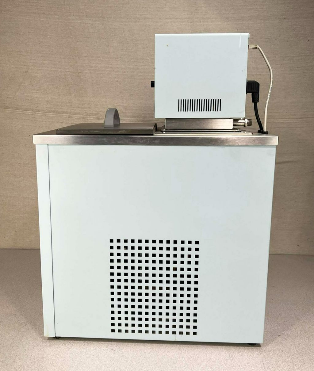 This Cole Parmer Polystat 3C15 212333800 Chiller, is used tested working surplus. It shows signs of use and handling, such as, minor scuffing and scratching. Also, the laminate on the bottom right corner on the face of the unit is peeled slightly (seen in pictures). Otherwise, the physical condition of the unit is good and clean.