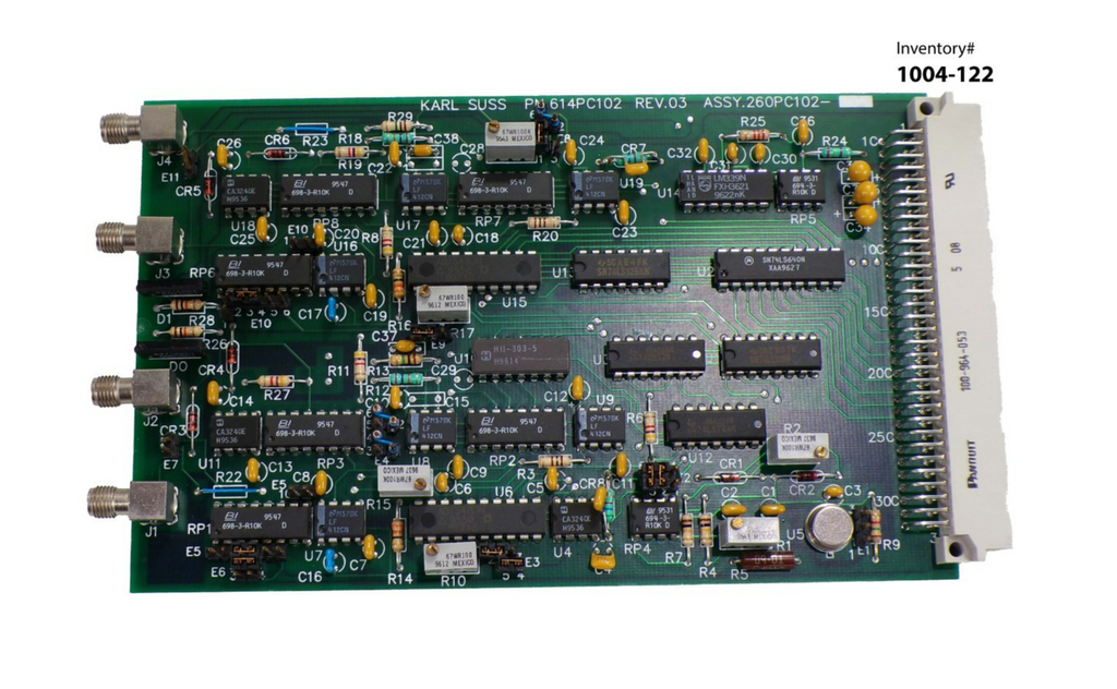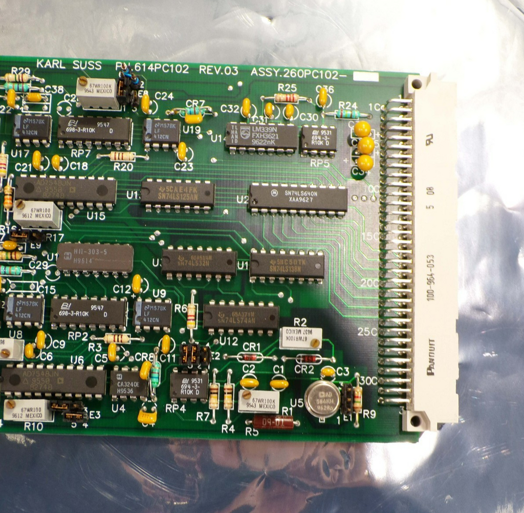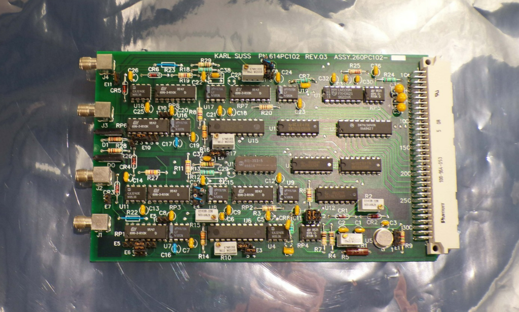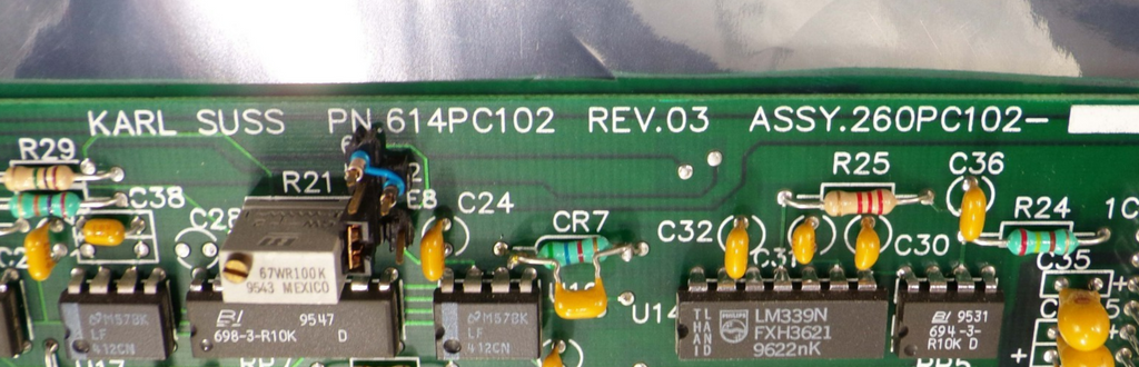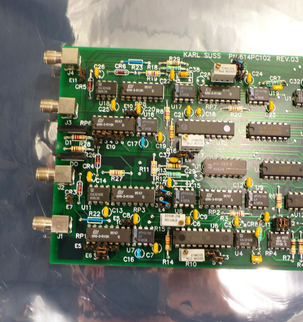 This Karl Suss 614PC102 (Rev 03) Circuit Board 260PC102, is used working surplus. The physical condition of the circuit board is good and clean. It was removed from a Karl Suss MA 150 mask aligner.