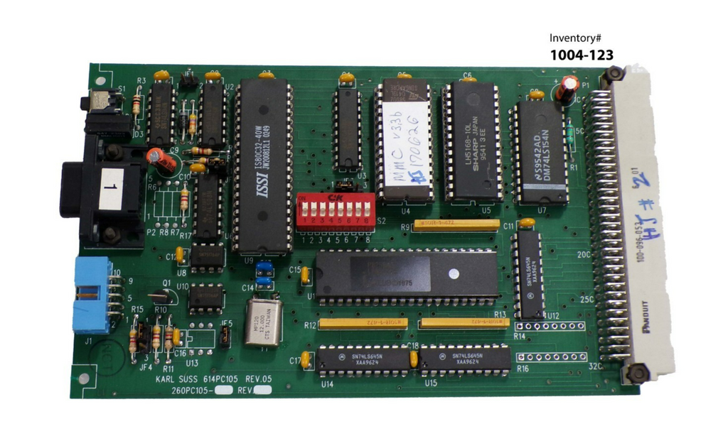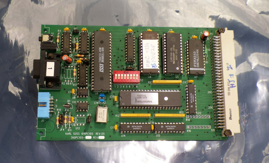 This Karl Suss 614PC105 (Rev 05) Circuit Board 260PC105, is used working surplus. The physical condition of the circuit board is good and clean. It was removed from a Karl Suss MA 150 mask aligner.
