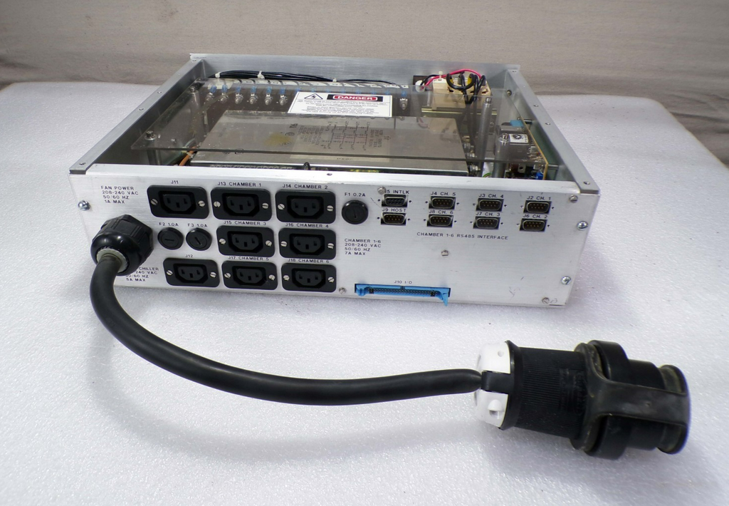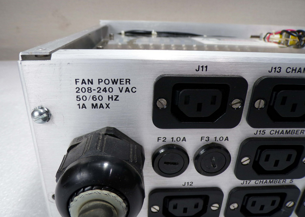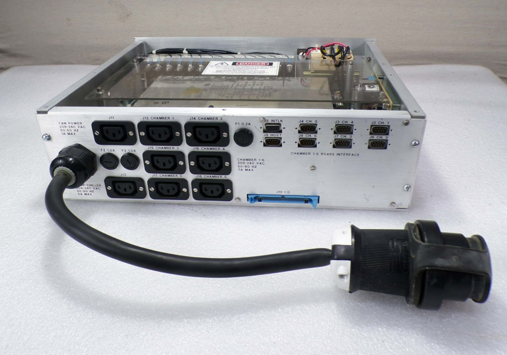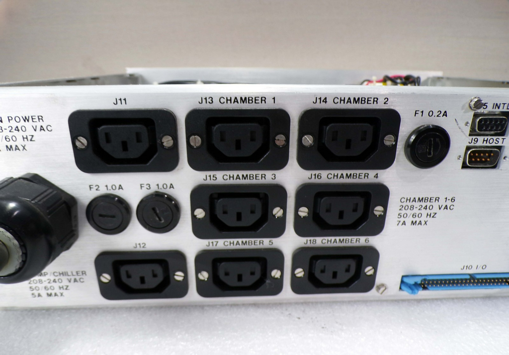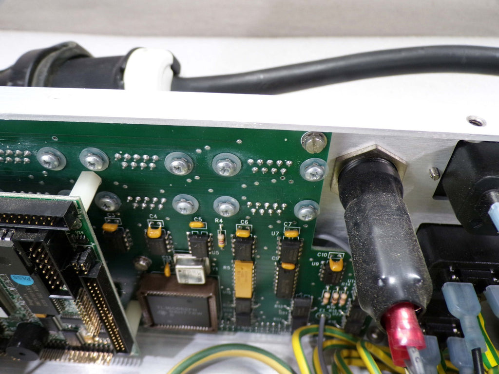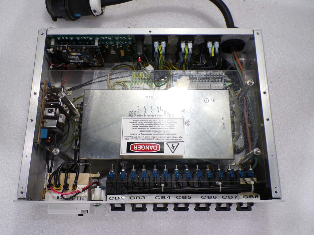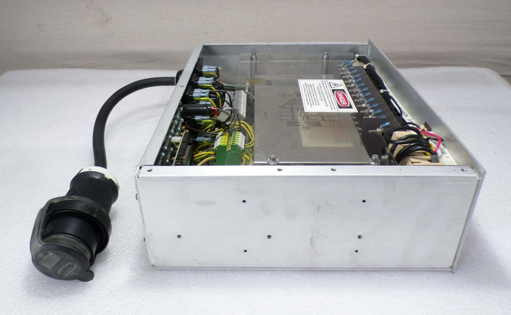 This Karl Suss C05A09818 CPU Circuit Board Power Distribution Module, is used working surplus. It shows signs of handling, such as, a broken latch on the blue cable connector on the back of the unit. Otherwise, the physical condition of the unit is good and clean. It was removed from a Karl Suss ACS-300 Coater.