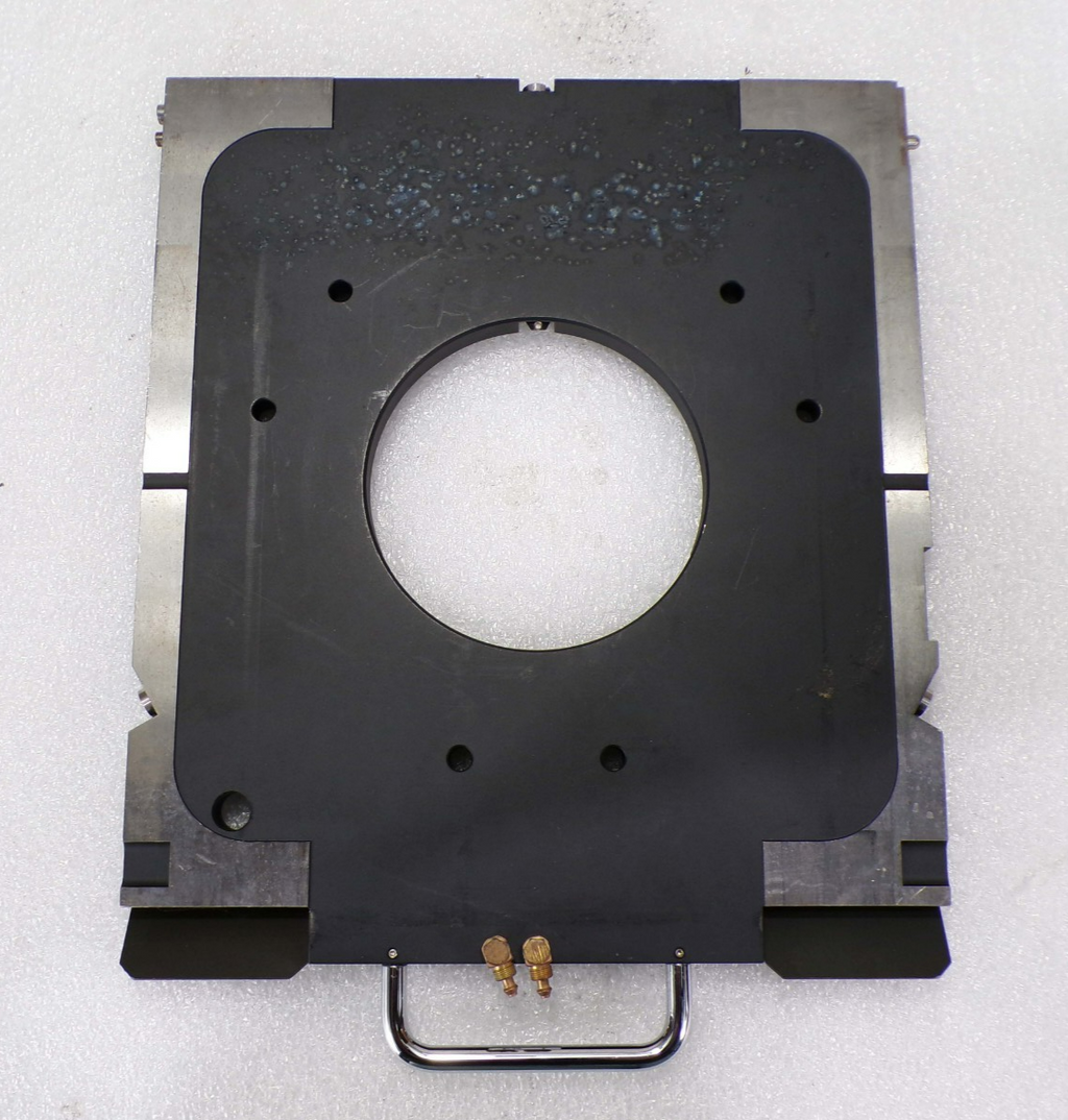 This Karl Suss 106124 MA-150 Mask Holder, is used working surplus. The physical condition of the unit is good and clean. It was removed from a Karl Suss MA-150 Mask Aligner.