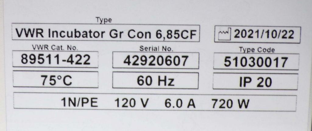 This VWR 89511-422 Incubator Gr Con 6,85CF is used working surplus. The physical condition of the unit is good and clean.