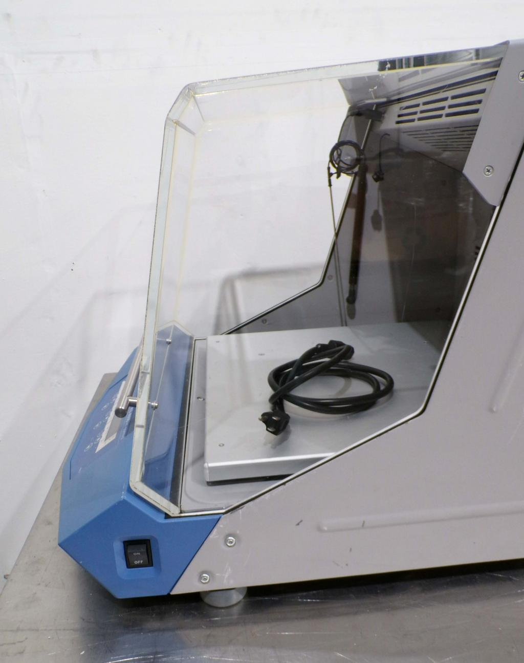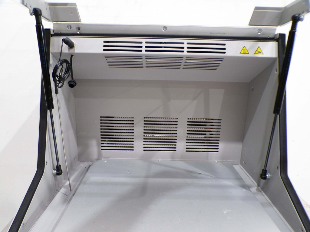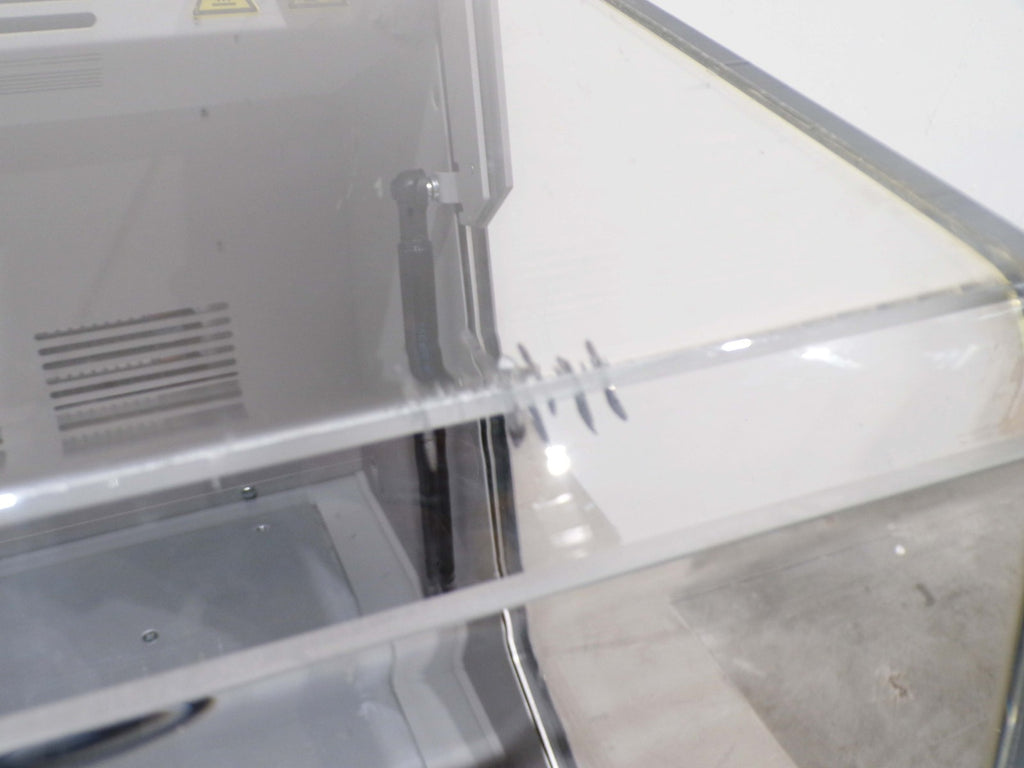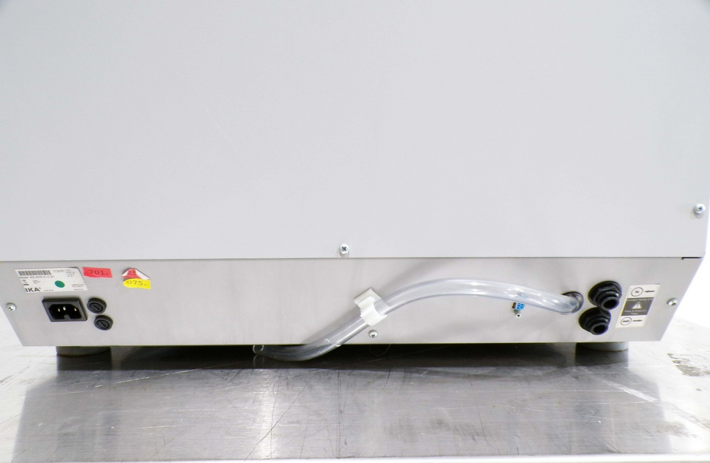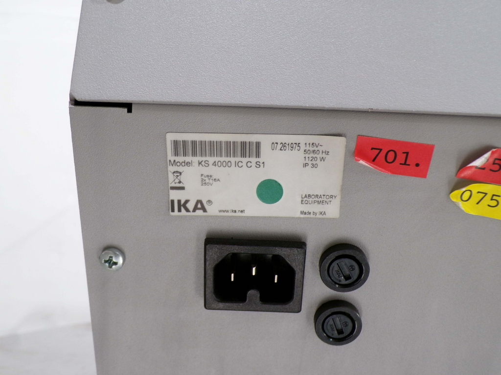 This IKA KS 4000 ic Control Incubator Shaker, is used tested working surplus. It shows signs of use and handling, such as, scratching on a panel. Also, there is a fracture mark in the glass, that does not leak. Otherwise, the physical condition of the unit is good and clean.