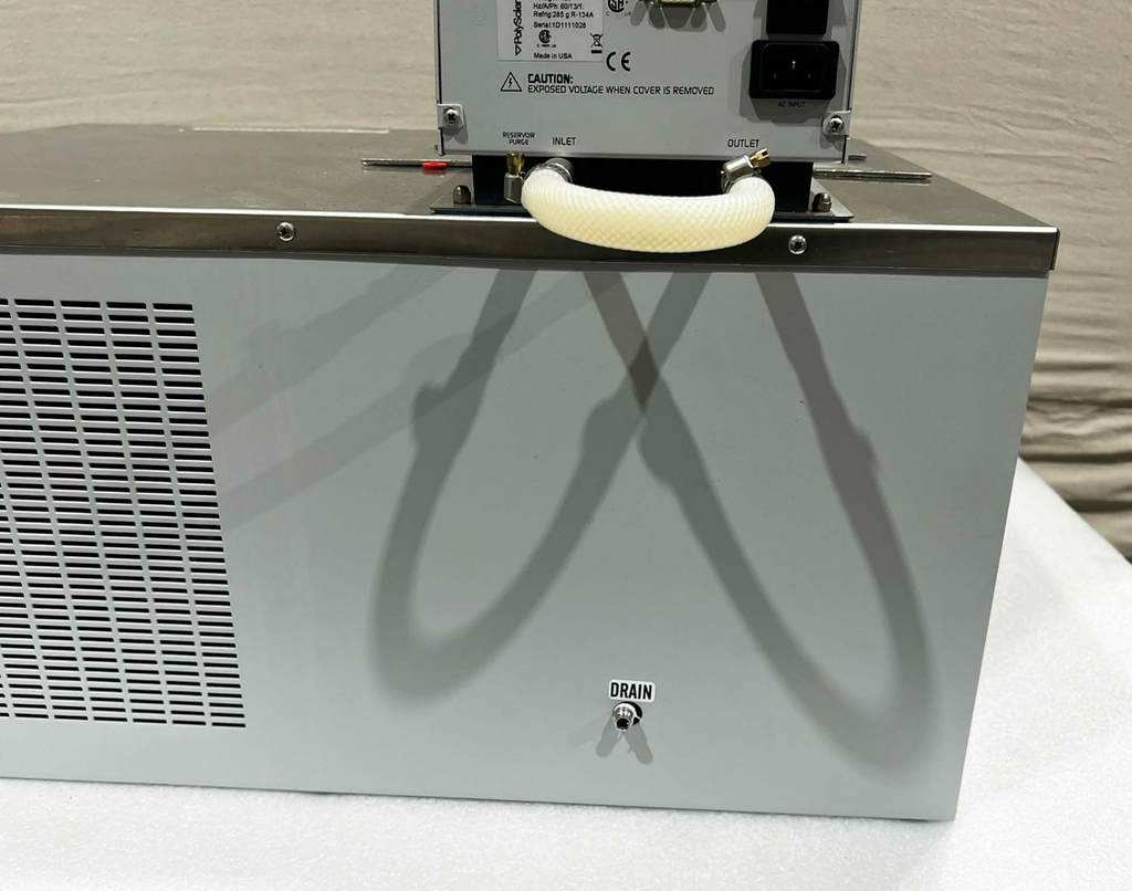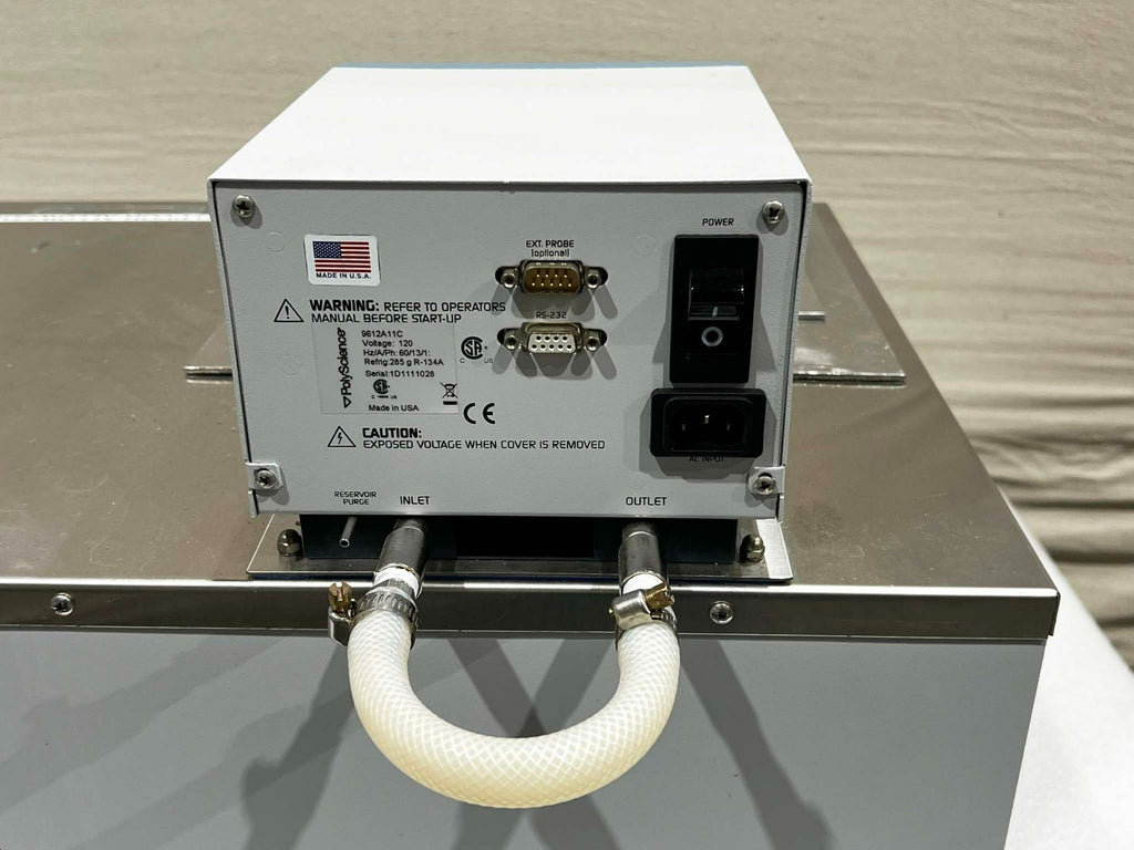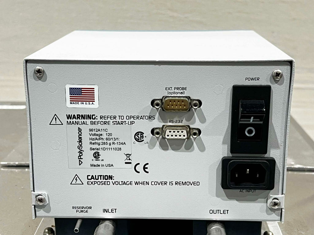 This PolyScience 9612A11C Chiller, is used working surplus. It shows signs of use and handling, such as, minor scuffing and scratching. Otherwise, the physical condition of the unit is good and clean.