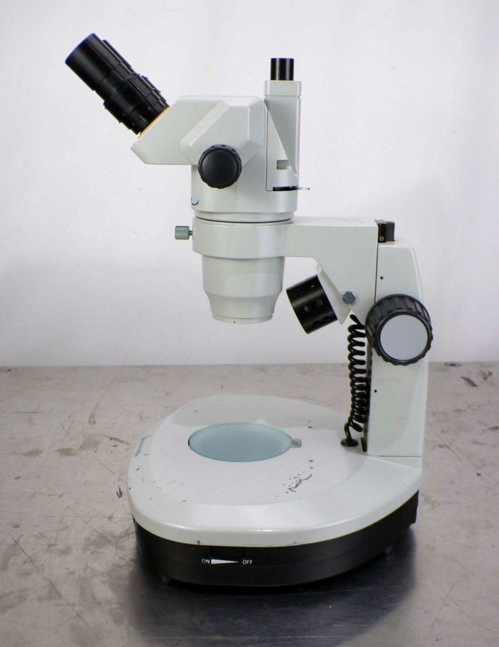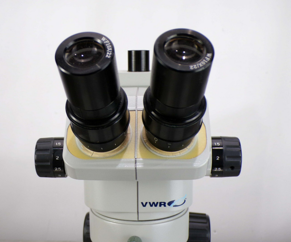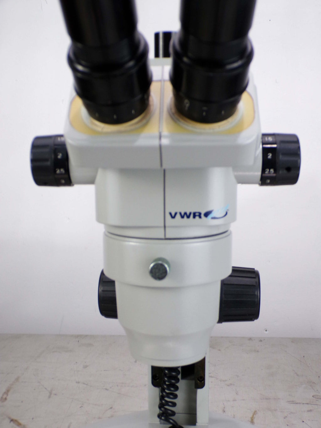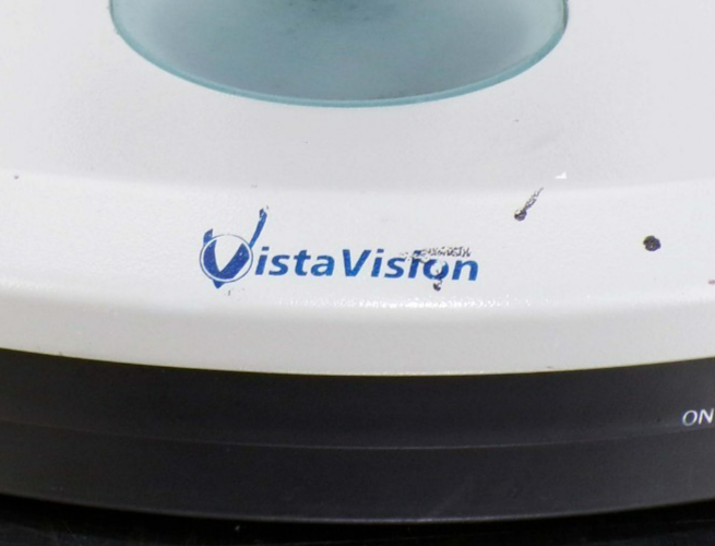 This VWR Vista Vision Stereozoom Microscope, is used working surplus. It shows signs of use and handling, such as, minor scuffing and marks (seen in pictures). Otherwise, the physical condition of the unit is good and clean.