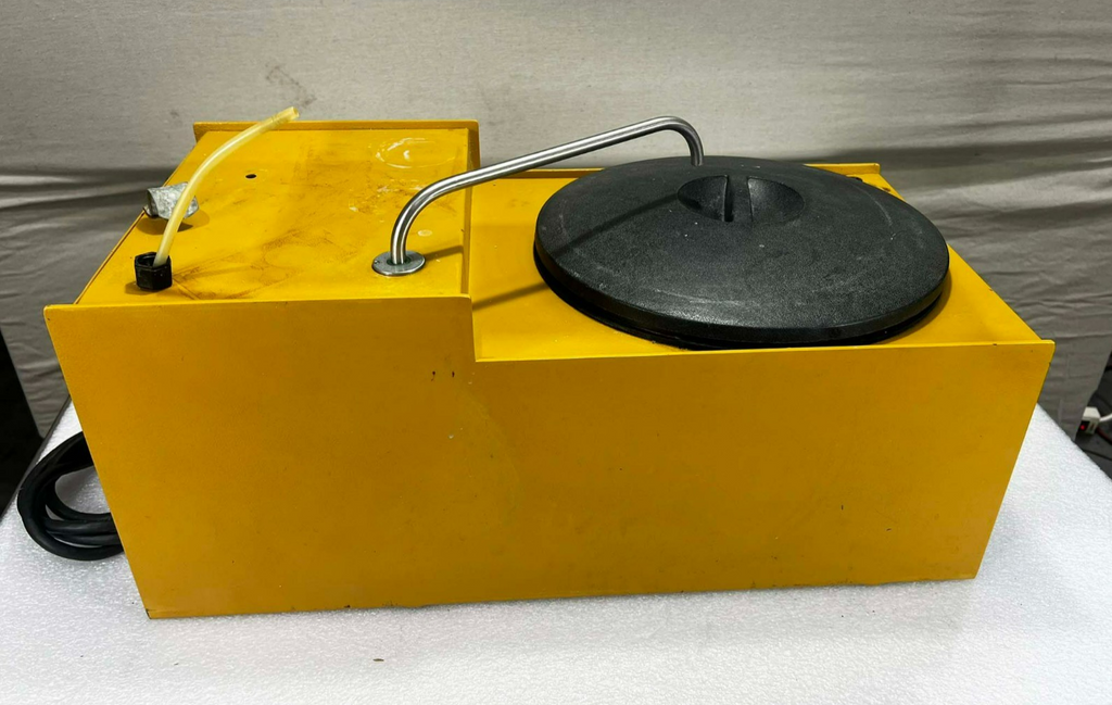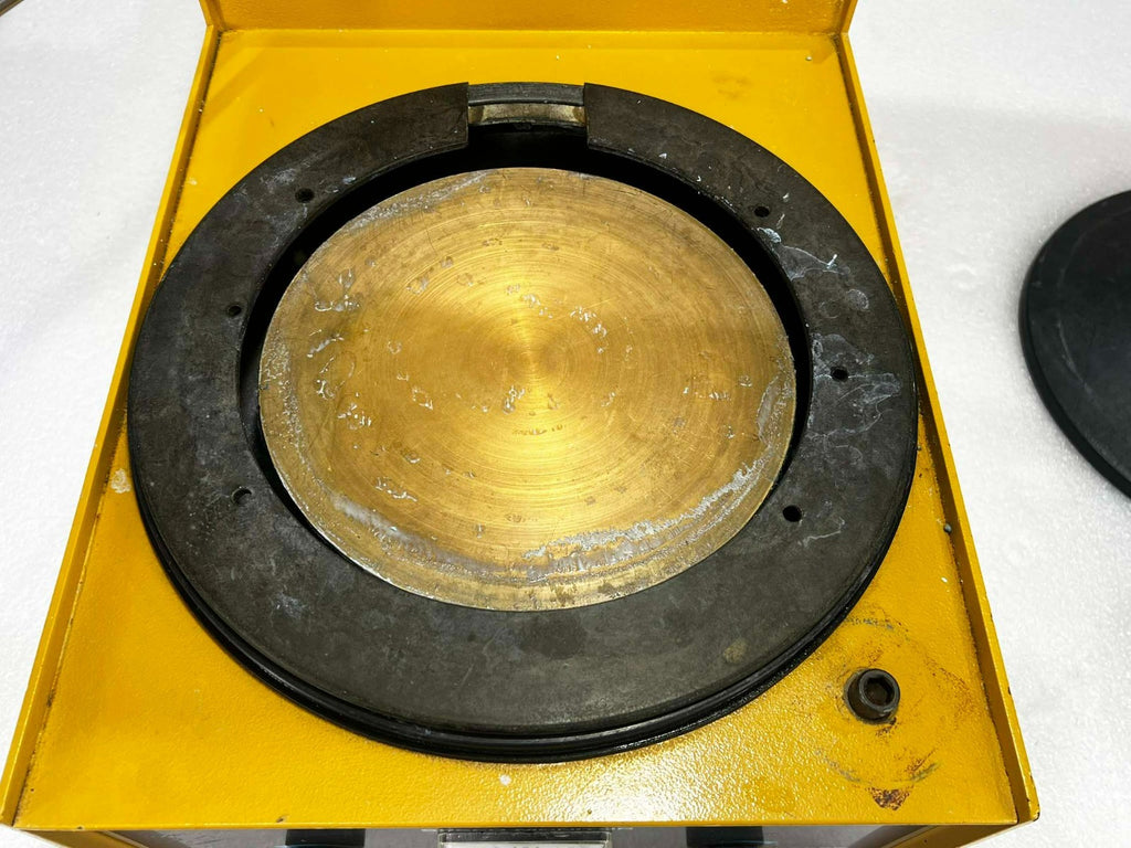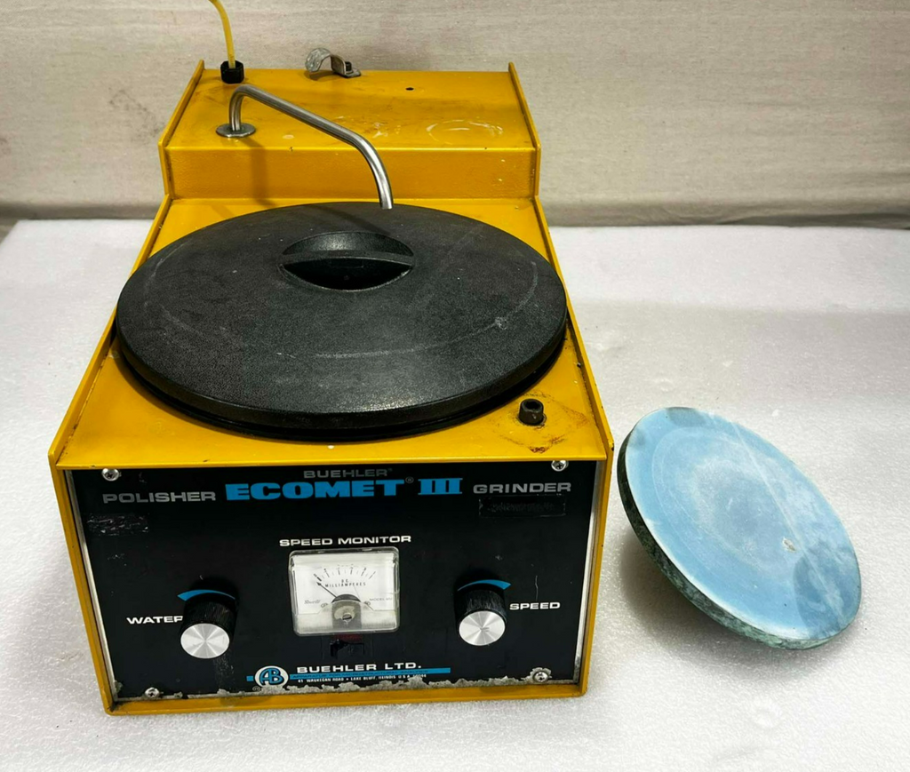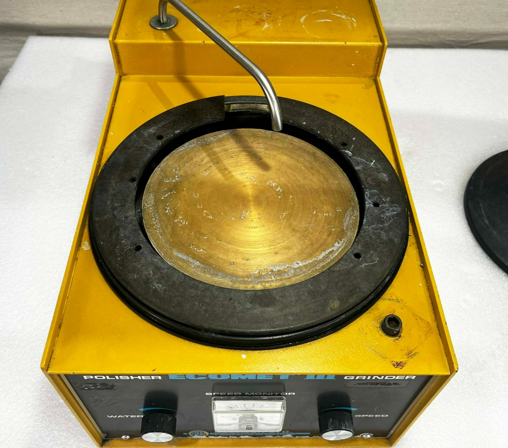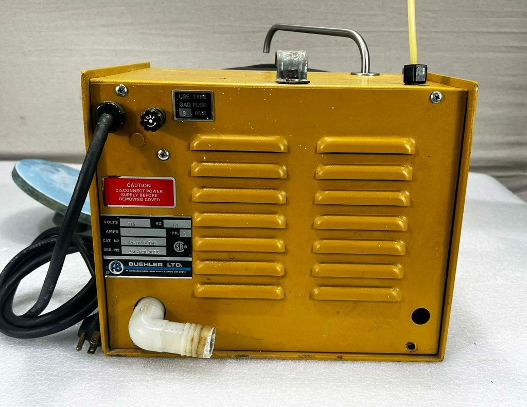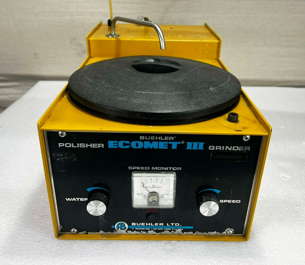 This Buehler Ecomet III Polisher Grinder, is used working surplus. However, the chucks included with the unit fit loosing on the motor shaft and will need be secured by some means. Also, the unit shows signs of use and handling, such as, scuffing and scratching. Further, the paint is flaking along the bottom edge on the from of the unti (seen in pictures). Otherwise, the physical condition of the unit is good and clean.